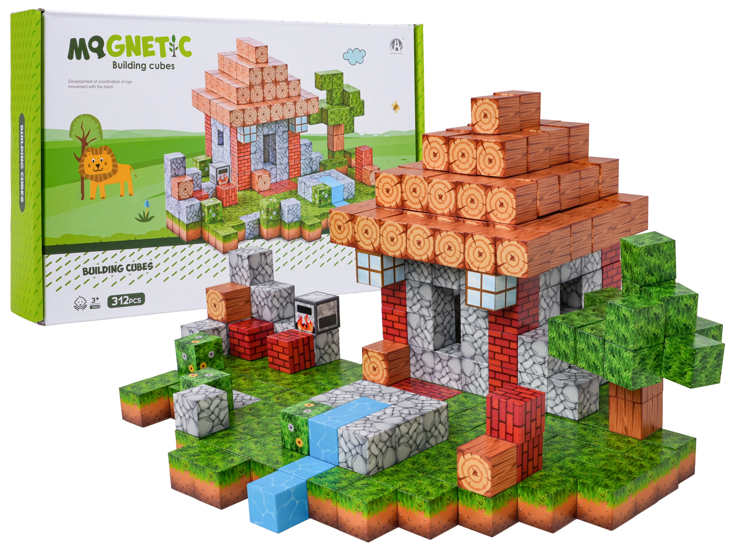 Découvrez un univers créatif avec des blocs magnétiques 3D pour enfants dès 3 ans. Le set de 312 blocs légers avec motifs bois, brique, herbe et eau permet de construire une maison colorée avec jardin et bien d’autres scènes. Grâce aux aimants en néodyme puissants, les constructions sont stables; le jeu développe la logique, l’imagination et la motricité fine.