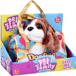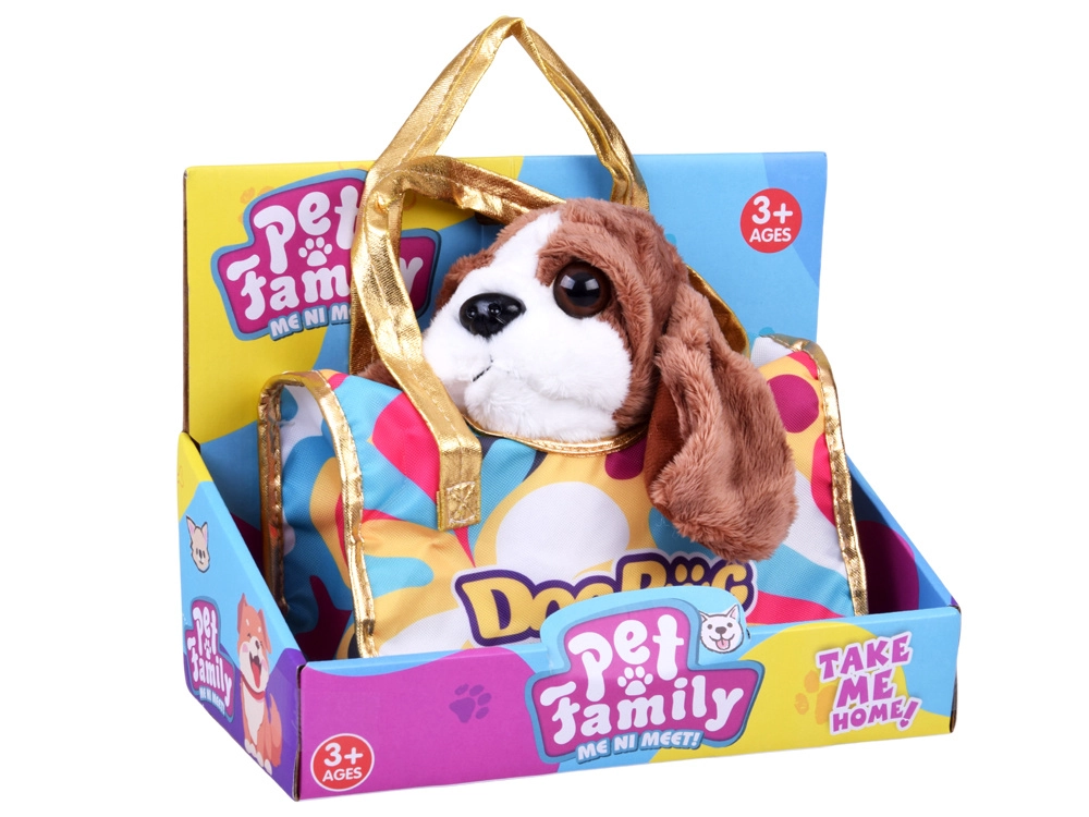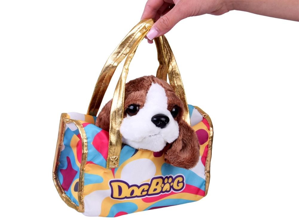 Le sac coloré avec anses dorées permet aux enfants d’emporter le chien partout – en promenade, à la maternelle ou en voyage.