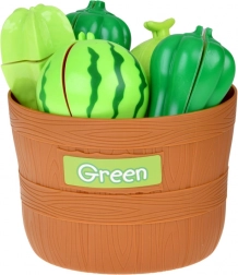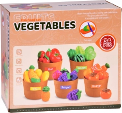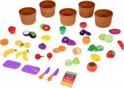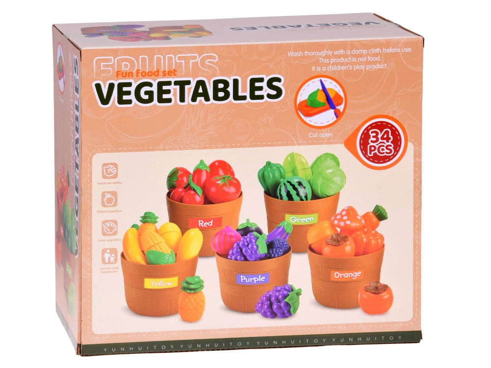 Set ludique et éducatif pour petits chefs : fruits et légumes en plastique à velcro, paniers colorés et accessoires pour le tri. Favorise le développement de la motricité fine, l’apprentissage des couleurs et la reconnaissance des fruits et légumes. La « découpe » sécurisée sur la planche avec des couteaux offre un jeu de cuisine réaliste et beaucoup de plaisir.
