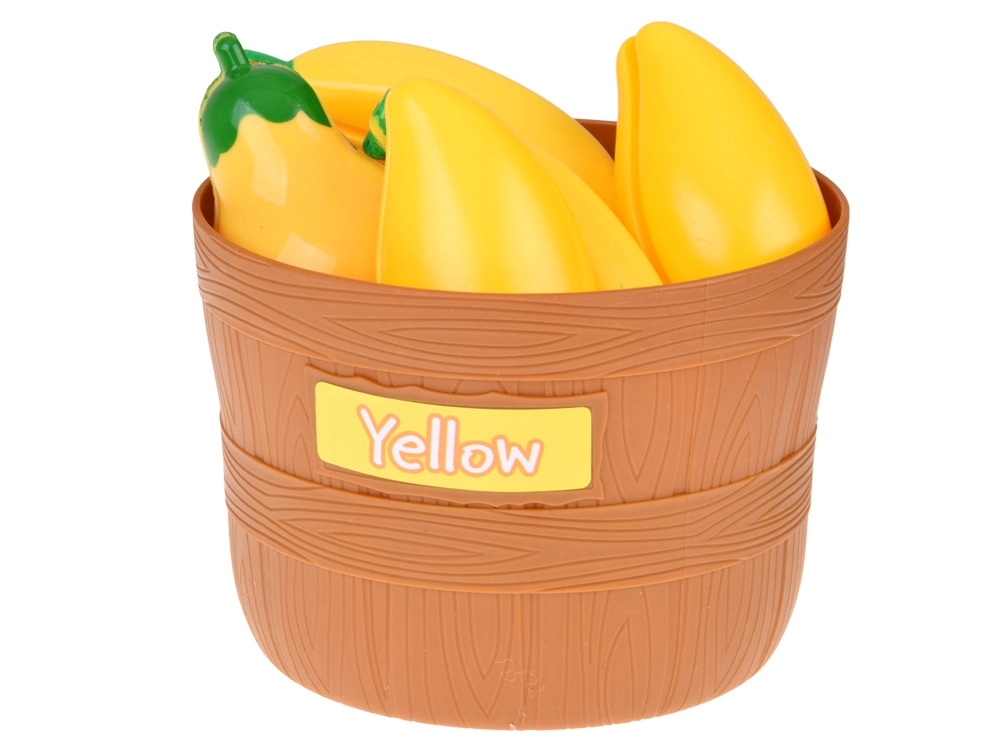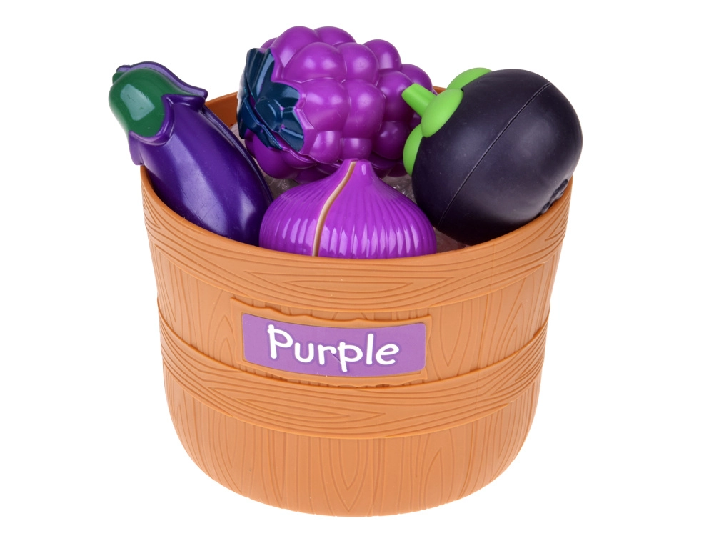 Cinq paniers avec étiquettes colorées motivent les enfants à trier les aliments par couleur. Une excellente base pour la perception précoce et le développement de la logique.