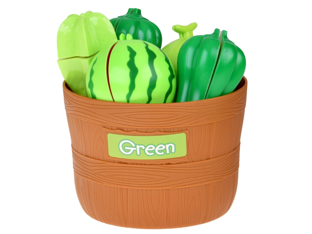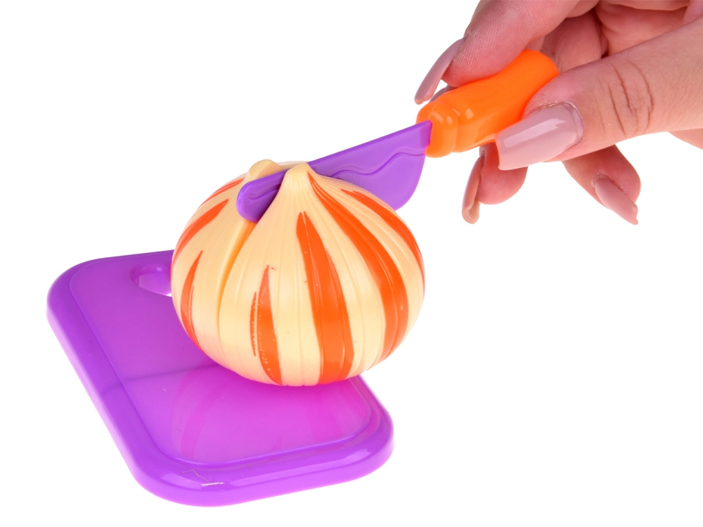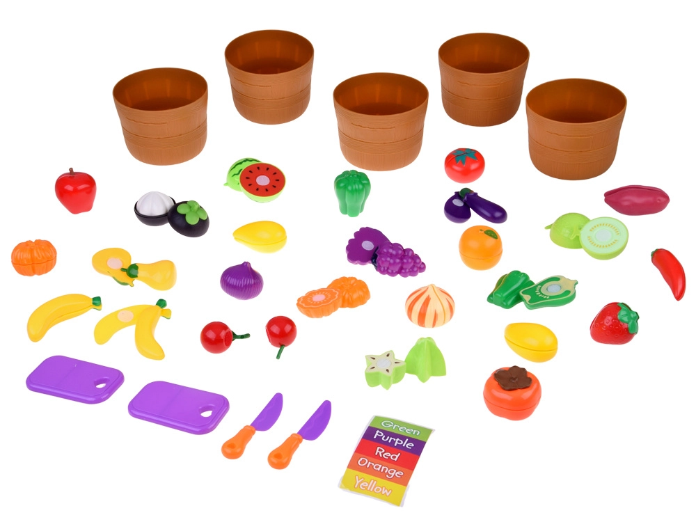 Le set comprend des paniers robustes avec étiquettes colorées, deux planches à découper et deux couteaux sûrs pour s’entraîner à la bonne prise en main et à la coordination œil-main. Le jeu développe la motricité fine, la pensée logique, le vocabulaire et la créativité.