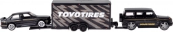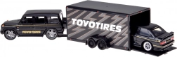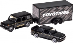 Découvrez un duo intemporel qui ravira collectionneurs et passionnés d’automobiles : le robuste MERCEDES‑BENZ G (1988) et la légendaire BMW M3 E30 dans une élégante livrée noire assortie. Carrosserie métallique aux lignes précises, roues en caoutchouc et marquages nets confèrent aux modèles une allure authentique. La remorque fonctionnelle avec rampe d’accès permet de « transporter » la BMW derrière le MERCEDES, ce qui augmente le plaisir de jeu comme l’attrait en vitrine.