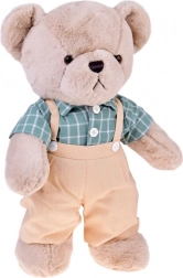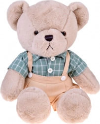 Le mignon ours en peluche Franek est un compagnon de 58 cm idéal pour les câlins, dans un style vintage élégant. Il a une fourrure beige toute douce, porte une chemise verte à carreaux et des bretelles beiges avec short. Les vêtements peuvent être facilement retirés grâce aux bandes auto-agrippantes, ce qui facilite l’entretien et la propreté de l’ours. Idéal comme cadeau pour enfants et adultes et une belle décoration pour la chambre d’enfant.