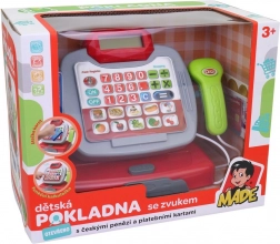 Un riche assortiment d’accessoires est inclus : billets tchèques, pièces en plastique de différentes valeurs et cartes de paiement. Les enfants s’exercent ainsi au calcul et aux habitudes de paiement de façon ludique. La construction robuste en plastique assure une grande résistance pour un usage quotidien.