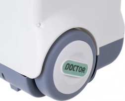 Le chariot à roulettes avec portes/tray rabattables facilite le déplacement entre les « cabinets » et garde les instruments bien organisés et toujours à portée de main.
