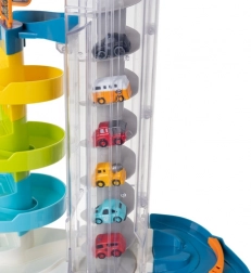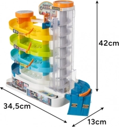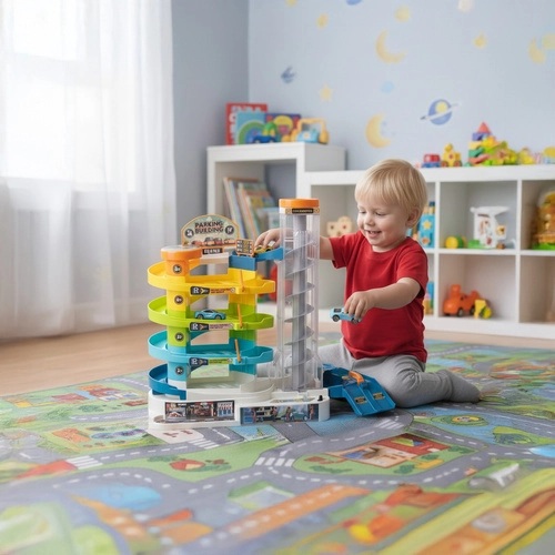 Garage de stationnement interactif avec ascenseur et rampe en spirale pour enfants