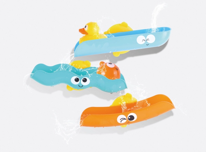 Un parcours d’eau amusant pour la baignoire transforme chaque bain en aventure. Grâce à de solides ventouses, vous le fixez facilement sur la paroi de la baignoire ou sur le carrelage, et l’eau peut ensuite couler le long du parcours à travers différents éléments. Idéal pour le développement de la motricité fine, de la pensée logique et pour le plaisir des expériences aquatiques.