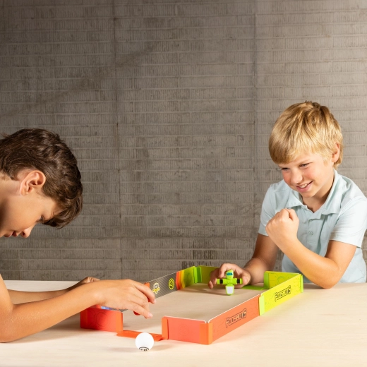 La bataille de stade Foosbots apporte dans votre salon l’action du baby‑foot au format de poche. Grâce aux rebords colorés, aux buts intégrés et à la paire de robots de doigt, lancez facilement un duel un contre un. Contrôlez vos « bots » du bout des doigts, tirez la balle blanche et défendez votre but à un rythme fulgurant.