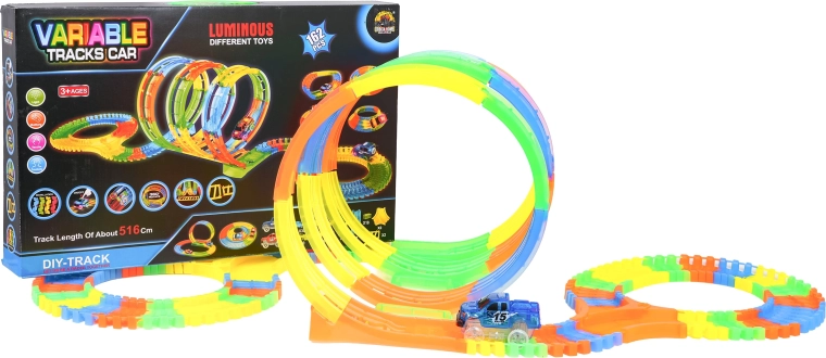 Offrez aux enfants un divertissement sans fin avec ce circuit de course de 162 pièces, flexible, phosphorescent et équipé d’une voiture LED. Les pièces s’emboîtent facilement pour créer différentes formes et loopings, afin que les petits pilotes dès 3 ans conçoivent leurs propres pistes et profitent de figures acrobatiques avec un effet lumineux spectaculaire.
