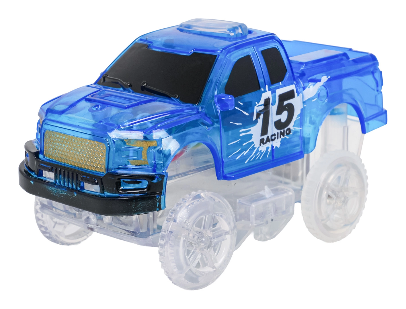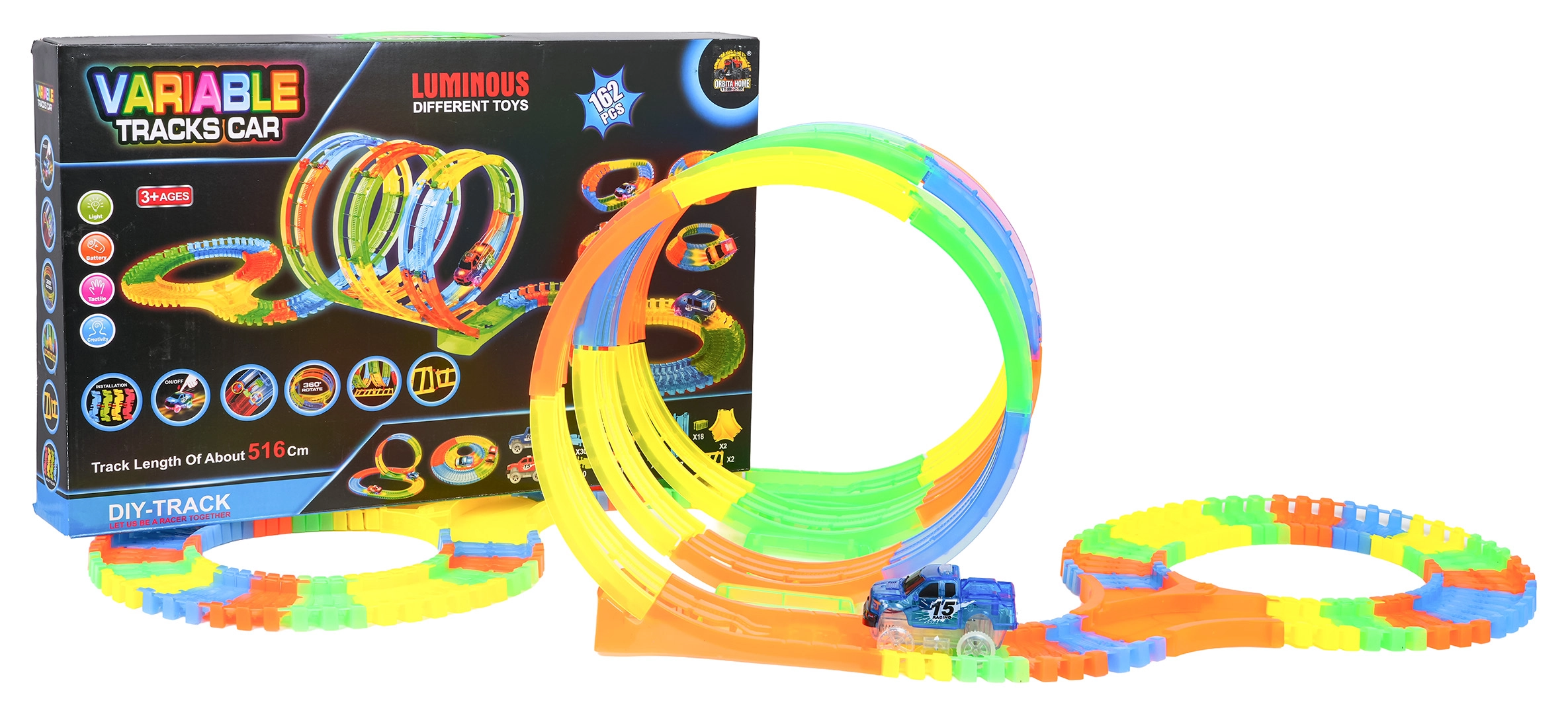 - Phosphorescent dans l’obscurité + voiture LED pour des courses nocturnes spectaculaires