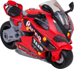 La moto est fabriquée à partir de matériaux de qualité et durables, possède une poignée confortable pour le transport, de grandes roues mobiles et des détails réalistes de carrosserie. Les effets incluent des phares avant, des feux arrière, des sons de moteur et un effet fumée unique à l’échappement après ajout d’eau. Idéal comme cadeau pour enfants curieux.
