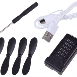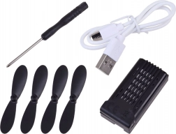 - Drone, contrôleur 2,4 GHz, câble de charge USB, batterie 3,7 V, 4× hélices de rechange, tournevis