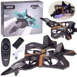 Drone RC léger en forme de chasseur en mousse résistante avec rotors protégés, offrant une prise en main facile, décollage/atterrissage à une touche, deux modes de vol et éclairage LED. Excellent choix pour les débutants et les ados dès 14 ans – développe la coordination, la concentration et les réflexes.