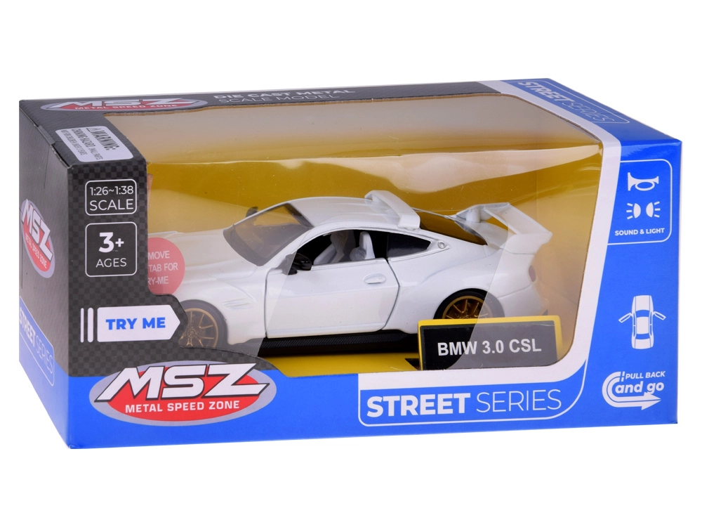 Compact mais minutieusement réalisé, le modèle BMW 3.0 CSL séduira les enfants comme les amateurs d’esthétique automobile classique. Sa carrosserie métallique, ses lignes sportives et les éléments typiques de BMW soulignent son look authentique. À l’ouverture des portes, les lumières avant et arrière s’allument et des sons réalistes de moteur et de conduite se déclenchent, rendant le jeu encore plus captivant.