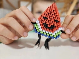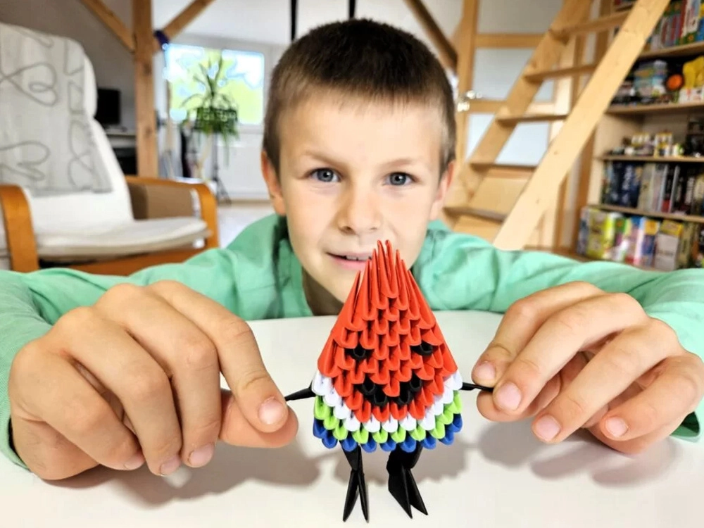 Ce kit ludique ORIGAMI 3D sur le thème de la pastèque est un choix idéal pour faire ses premiers pas dans l’origami modulaire. La forme spéciale des pièces avec une ligne de pliage clairement indiquée vous permet de plier avec fluidité et assurance. En quelques étapes simples naît une figurine 3D multicolore, agréable à exposer comme décoration et gratifiante comme résultat d’une activité créative.