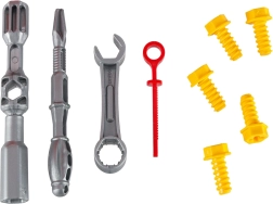 Le coffret comprend un riche assortiment de pièces et d’outils : 31 vis et tire-fonds, une clé en deux parties et un tournevis, une clé plate/à œil, des roues avec jantes, un volant, un capot avec moteur et des autocollants pour la personnalisation. Les enfants entraînent ainsi leur motricité fine, leur patience et leur raisonnement logique – tout en s’amusant.