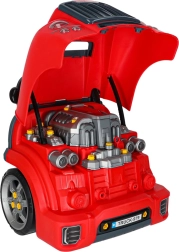 Ce set éducatif plonge les enfants dans l’univers de l’automobile – du démontage des pièces du moteur à la simulation de conduite, jusqu’aux véritables « interventions d’atelier » sous le capot. Le tout est animé par des effets lumineux et sonores du moteur et du klaxon, un bouton de démarrage, un feu d’urgence et un levier de vitesses. Sa construction robuste en plastique et la fonction pousse-pousse aident également à l’apprentissage de la marche et au développement de l’équilibre.