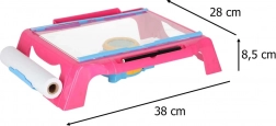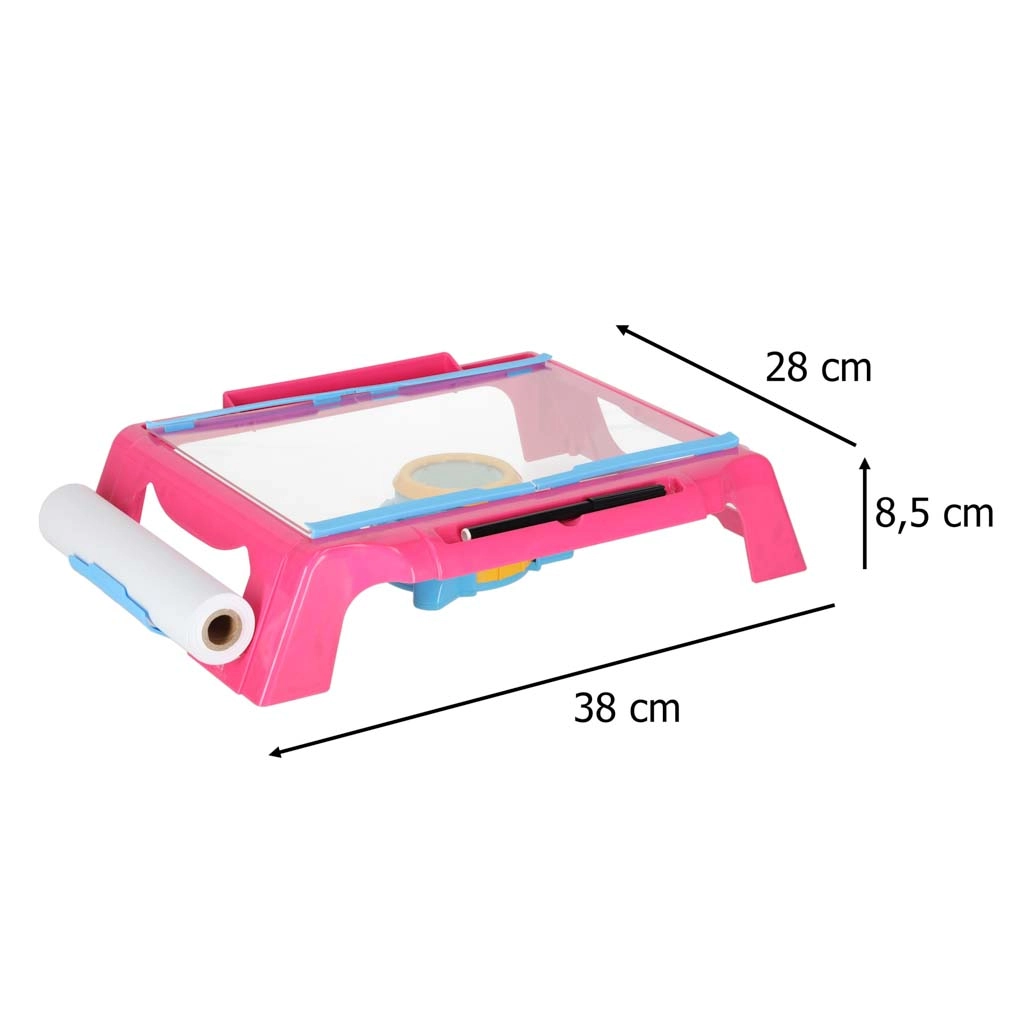 Cette table à dessin compacte avec projecteur projette les images directement sur le papier, permettant aux enfants de décalquer facilement et d’apprendre à dessiner pas à pas. La surface de travail claire, le distributeur avec rouleau de papier et les 4 pinces maintiennent le papier fermement en place. La lentille réglable du projecteur garantit une image nette pour des lignes claires.
