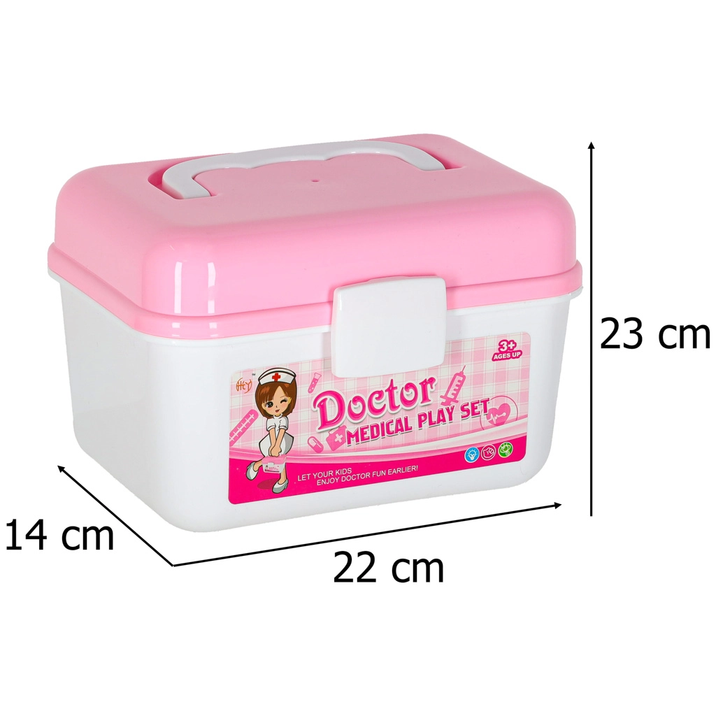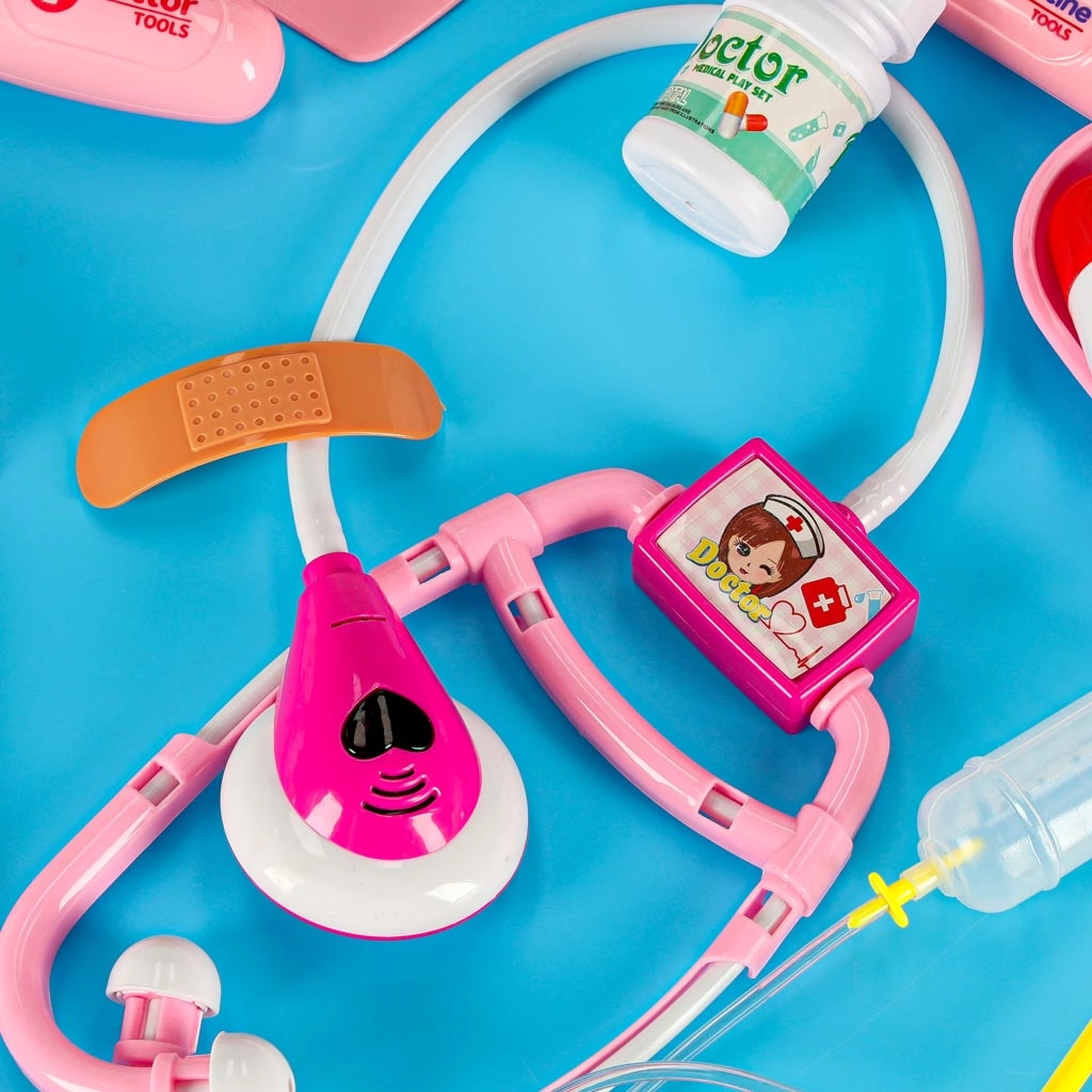 Adorable mallette médicale blanc‑rose avec costume et riche ensemble de 35 pièces qui transforme chaque enfant en petit médecin ou infirmier/infirmière. Comprend des outils interactifs avec lumière et son (stéthoscope avec battements de cœur, thermomètre, otoscope, oxymètre de pouls, lampe de poche), des instruments dentaires et un pied à perfusion pour un jeu réaliste. Un excellent jouet qui stimule l’imagination, apaise la peur du médecin et enseigne la prévention santé et l’hygiène.