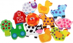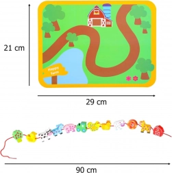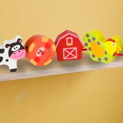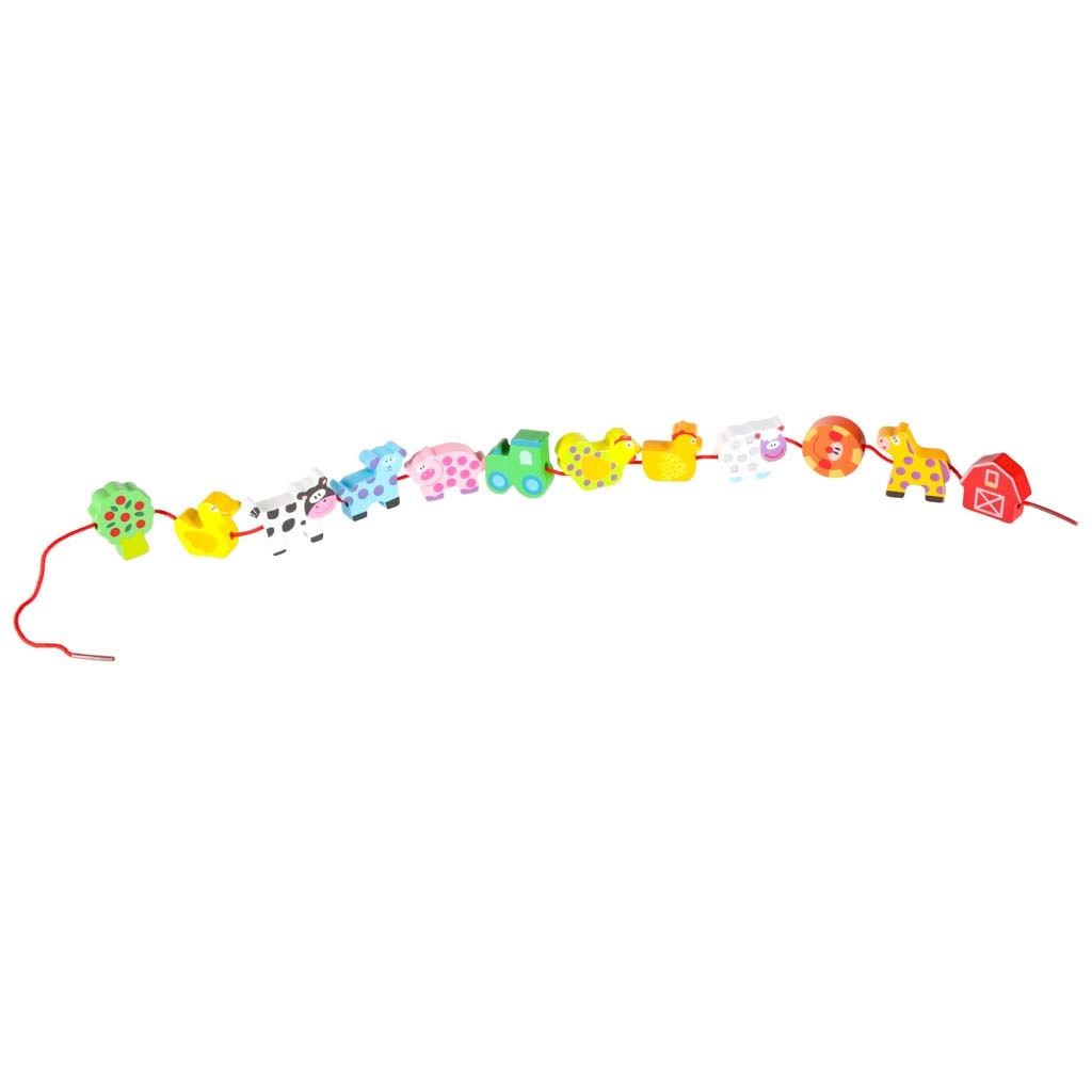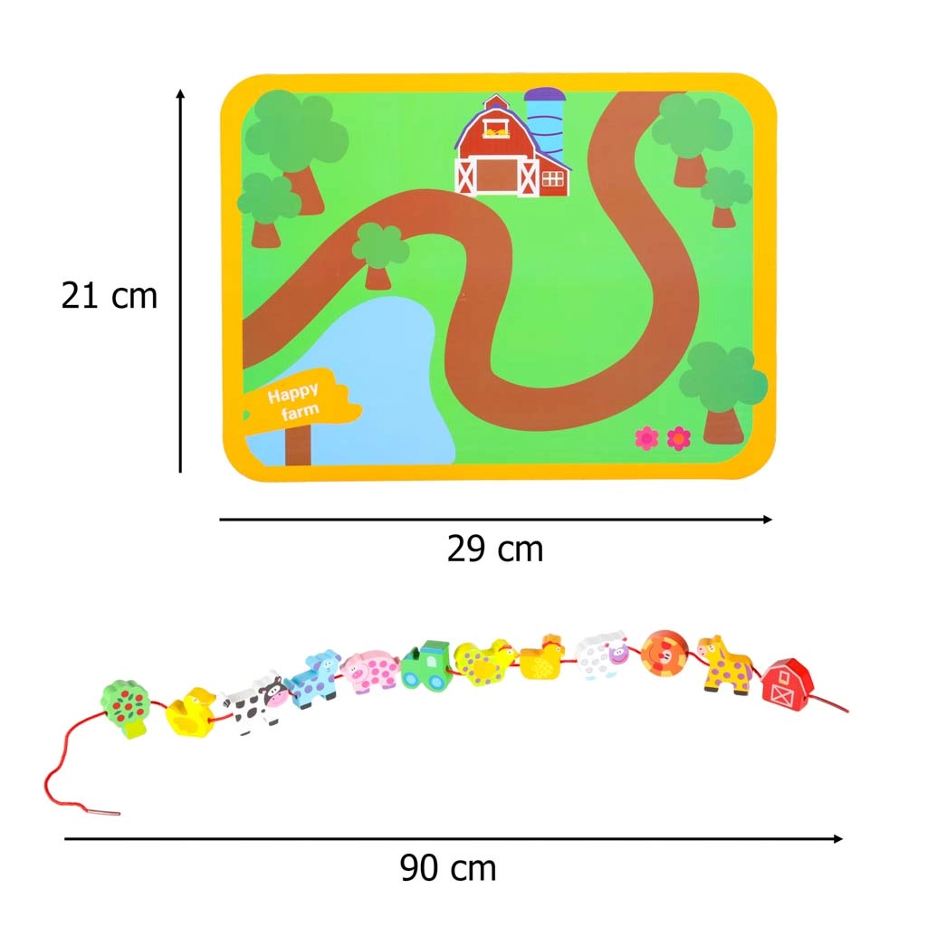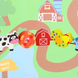 Ce set en bois coloré à thème de ferme allie plaisir et apprentissage. Les enfants peuvent enfiler des animaux, une grange, un tracteur et d’autres pièces sur le cordon, composer des scènes sur le plateau fourni et développer ainsi la motricité, la pensée logique et l’imagination. Des pièces robustes, aux finitions lisses, tiennent parfaitement dans les petites mains.