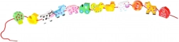 Enfiler les pièces en bois sur le cordon développe la précision des doigts, la patience et la concentration. Préparation idéale à l’écriture et au dessin de manière ludique.