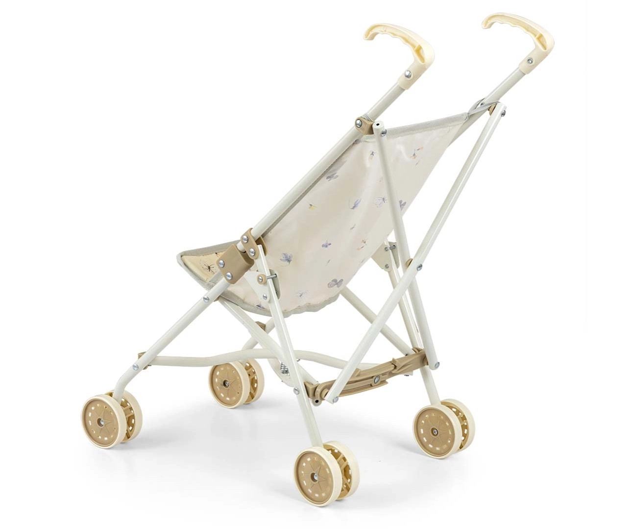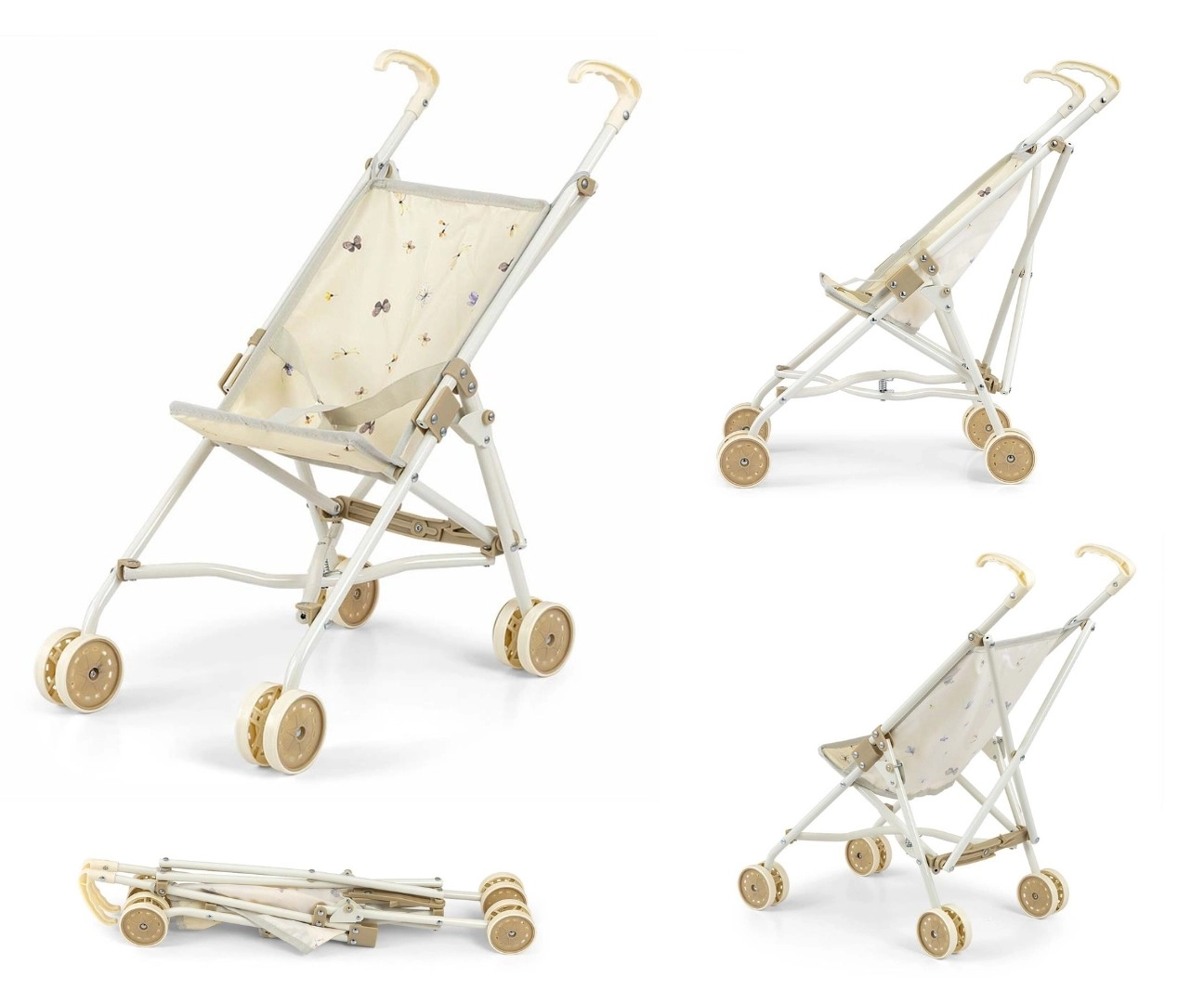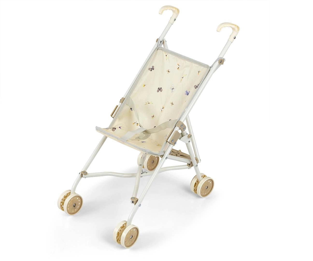 Grâce à son pliage canne rapide, la poussette se range facilement à plat, sans prendre de place à la maison ni en déplacement. Le châssis métallique assure la solidité, les roues doubles offrent une conduite fluide et la ceinture de sécurité maintient la poupée bien en place.