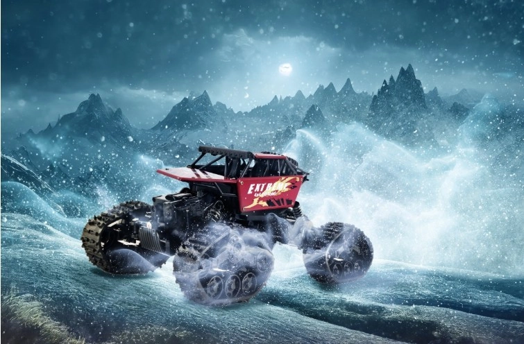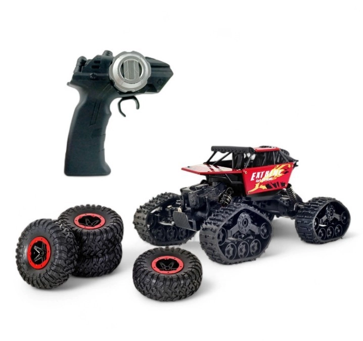 Grâce à la transmission intégrale 4×4 et aux roues ou chenilles interchangeables, la voiture maîtrise différents revêtements – de la moquette au gravier en passant par l’herbe. La télécommande moderne 2,4 GHz offre une connexion stable sans interférences, idéale pour rouler en solo comme en groupe.