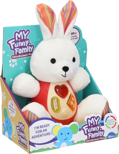 Ce lapin interactif tout doux est un excellent compagnon pour les premières découvertes des sons et des lumières. Il combine une surface en peluche agréable avec un ventre en plastique résistant, sur lequel les enfants activent facilement les mélodies, sons et effets lumineux. Grâce à ses dimensions compactes, il tient bien en main et est idéal pour jouer à la maison comme en déplacement.