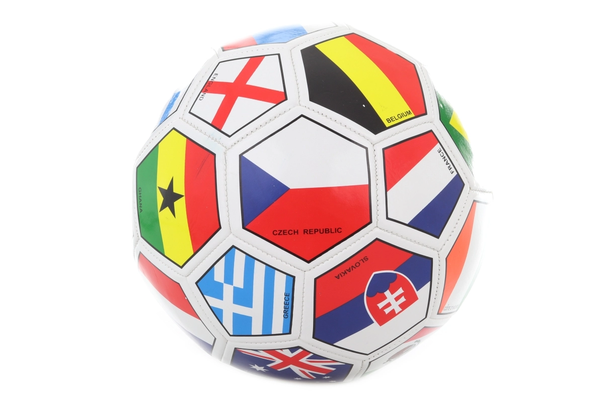 Découvrez le plaisir de jeu avec ce ballon de football à motifs de drapeaux, qui offre un design attrayant et de bonnes qualités de jeu pour un usage récréatif. Le ballon convient au gazon et aux surfaces terreuses, pour jouer au jardin, au parc ou sur le terrain.