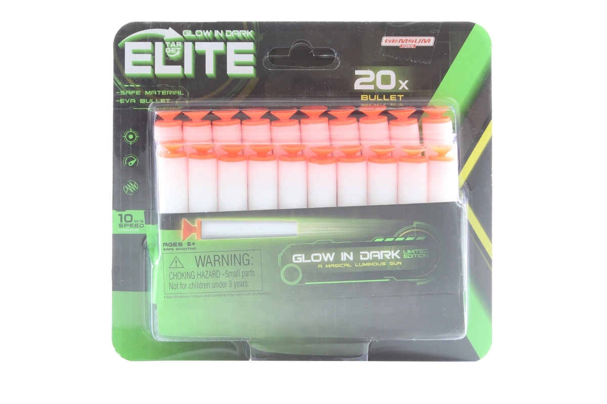 Chaque projectile est doté d’une ventouse pour une meilleure adhérence sur les surfaces lisses et possède un format standard de 7 × 1,3 cm, compatible avec la plupart des pistolets jouets. Le pack comprend 20 pièces, de quoi jouer plus longtemps sans interruption.