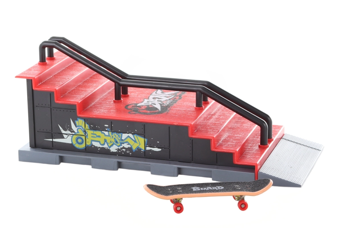 Cette rampe compacte avec marches est un excellent accessoire pour tous les jeunes fans de skateboard. Elle comprend un mini skateboard à vis que les enfants peuvent assembler facilement pour essayer toutes sortes de figures et sauts. La construction en plastique résistant est légère mais stable pour un jeu sûr à la maison comme en extérieur.