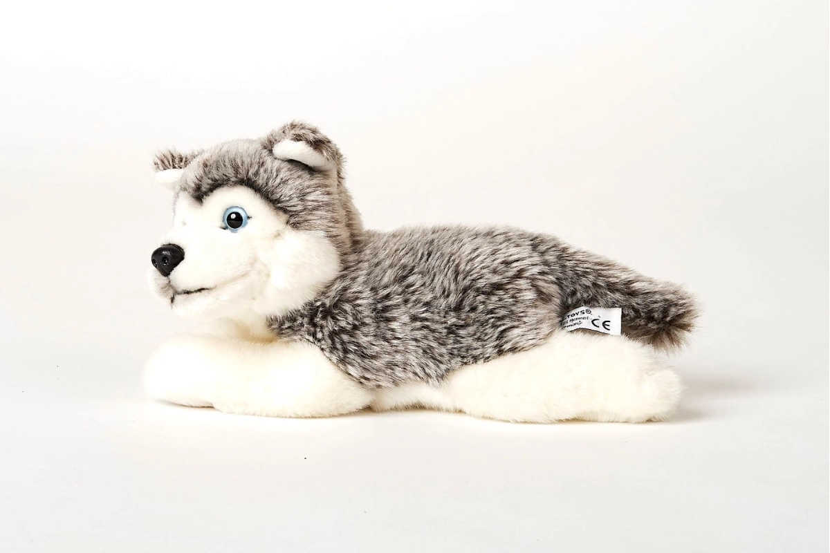 Adorable husky en peluche en position couchée de 23 cm qui ravira les petits comme les grands amoureux des animaux. Il est fabriqué dans une matière agréable et convient dès 0+. Ce compagnon écoresponsable est idéal pour les câlins, le jeu et comme décoration dans la chambre d’enfant.