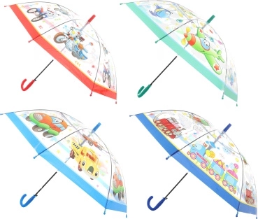 Un compagnon pratique et ludique pour les jours de pluie – parapluie transparent à ouverture automatique avec motifs colorés de moyens de transport. Le matériau transparent offre une meilleure vue sur l’environnement et une marche plus sûre, tandis que l’ouverture automatique permet une utilisation aisée d’une seule main.