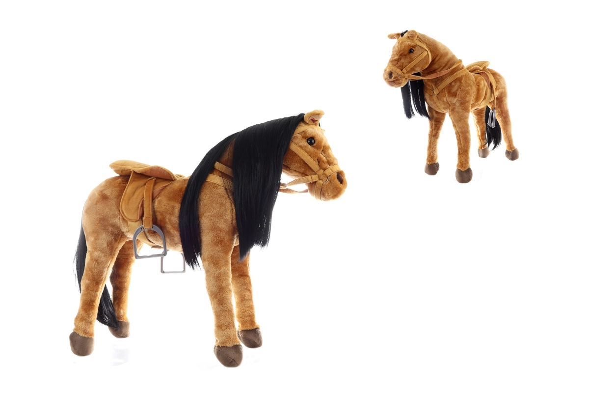Il est livré avec une selle, une bride et des rênes, afin que les enfants puissent s’entraîner aux bases de l’équitation. Aucun montage n’est nécessaire et, grâce aux piles fournies, le jouet peut être utilisé immédiatement après déballage. Le doux peluche agréable est respectueux de la peau des enfants et facile à entretenir.