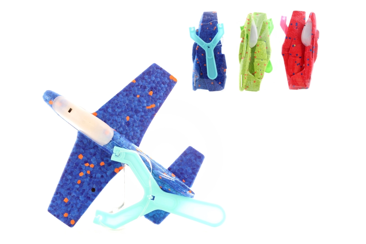Avion à lancer avec lance-pierre, amusant pour petits et grands pilotes. Une fois allumé, il émet une lumière LED fixe ou clignotante, alimentée par des piles AG13 incluses. Compact et léger, idéal pour jouer au jardin comme au parc.