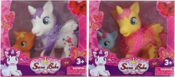 Adorable set de deux licornes qui ravira tous les petits amateurs de contes. Il contient une grande et une petite licorne en plastique résistant, idéal pour le jeu créatif et le développement de l’imagination. L’emballage compact et deux variantes de couleurs (selon disponibilité en stock) en font un excellent cadeau pour les enfants à partir de 3 ans.