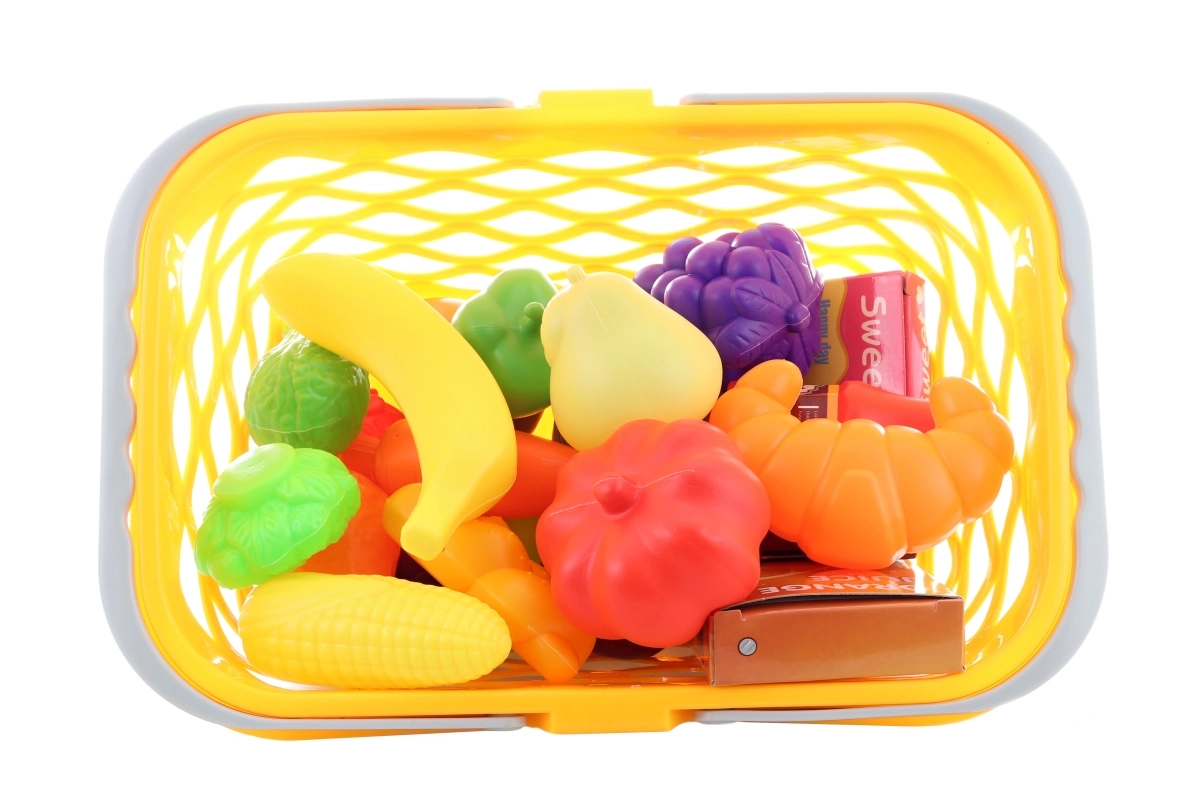 Un panier rempli de fruits et légumes stimule l’imagination, développe la communication et apprend aux enfants les bases des achats et de la cuisine.
