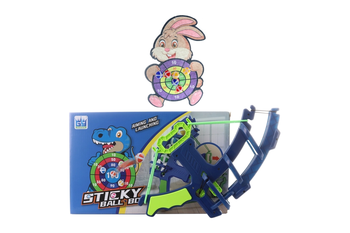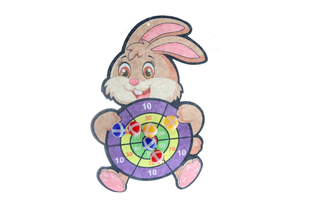 - Arbalète, cible motif lapin, 6 balles, crochet de suspension