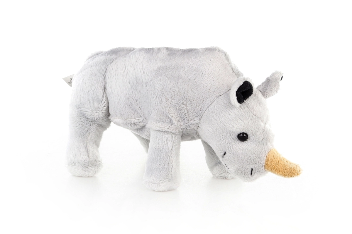 Ce rhinocéros en peluche est fabriqué dans une matière douce et moelleuse qui invite aux câlins. Grâce à sa taille universelle de 20 cm, il tient confortablement dans la main d’un enfant, une poussette ou un petit sac à dos. Son design neutre en fait un excellent compagnon pour les garçons comme pour les filles.