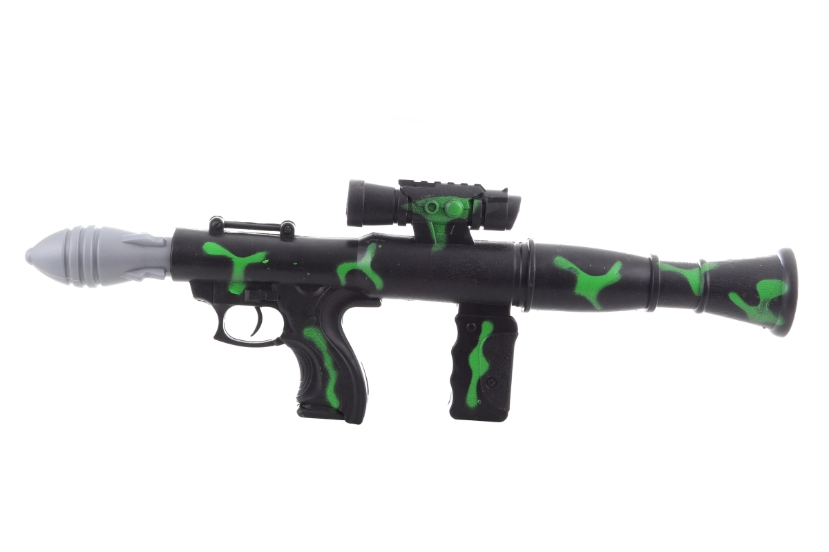 Lance-roquettes en plastique résistant avec poignée ergonomique, facilitant l’utilisation même pour les plus petits et offrant de longues heures de jeu en toute sécurité.