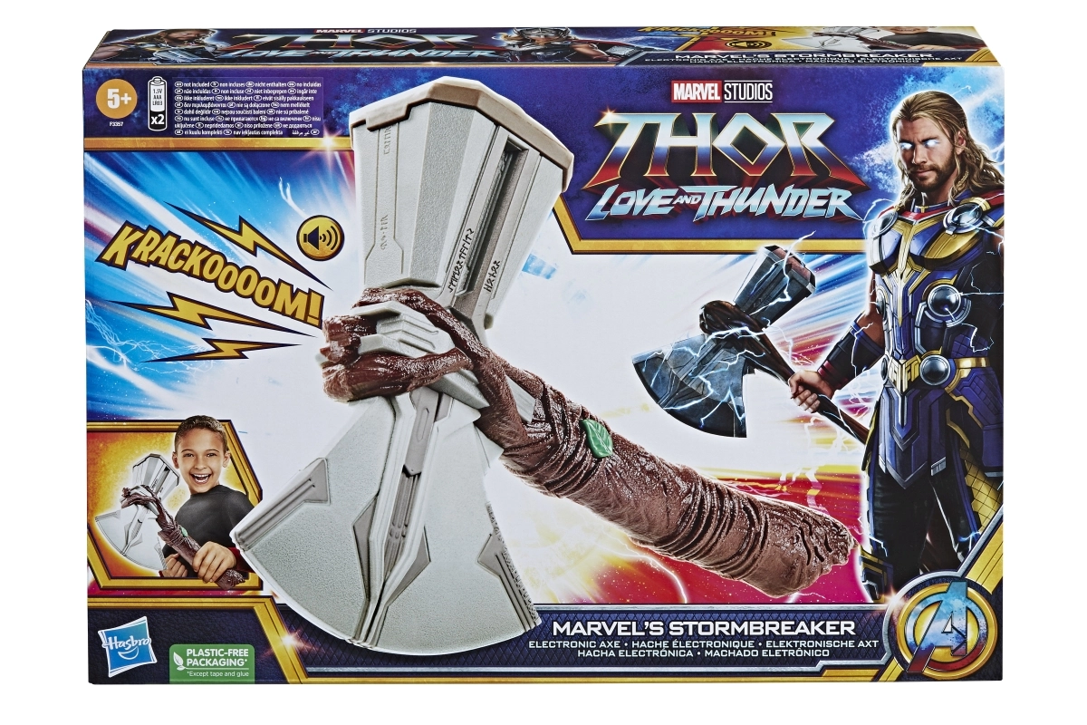 Devenez un héros comme Thor avec l’iconique hache Stormbreaker, inspirée du film Thor: Love and Thunder. Ce jouet émet de réalistes effets sonores d’orage et de tonnerre, activés par un bouton en forme de feuille. Il est fabriqué en plastique de haute qualité, convient aux enfants à partir de 5 ans et fonctionne avec 2× piles AAA (incluses).