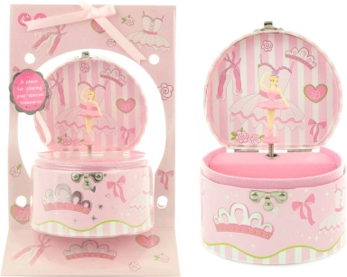 Cette élégante boîte à bijoux musicale avec ballerine offre l’endroit idéal pour ranger bagues, bracelets et autres petits accessoires. À l’ouverture du couvercle et après avoir remonté la clé, la ballerine danse gracieusement devant le miroir tandis qu’une musique agréable se fait entendre. Grâce à ses dimensions compactes, la boîte à bijoux se place facilement sur une table de nuit ou une étagère dans la chambre d’enfant.