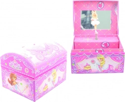 Charmante boîte à bijoux musicale rose pour petites coquettes, renfermant un miroir et une ballerine dansante qui se met à tourner après avoir remonté le mécanisme, en jouant une douce mélodie. Idéale pour conserver bijoux et trésors d’enfants, avec un intérieur sûr et un adorable look de princesse.