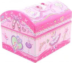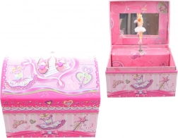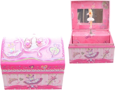 Ce charmant coffret en forme de petite malle est l’endroit idéal pour ranger bagues, boucles d’oreilles et autres bricoles. Après avoir remonté la clé et ouvert le couvercle, la figurine de ballerine se met à tourner devant le miroir et une mélodie résonne, créant une ambiance féerique.