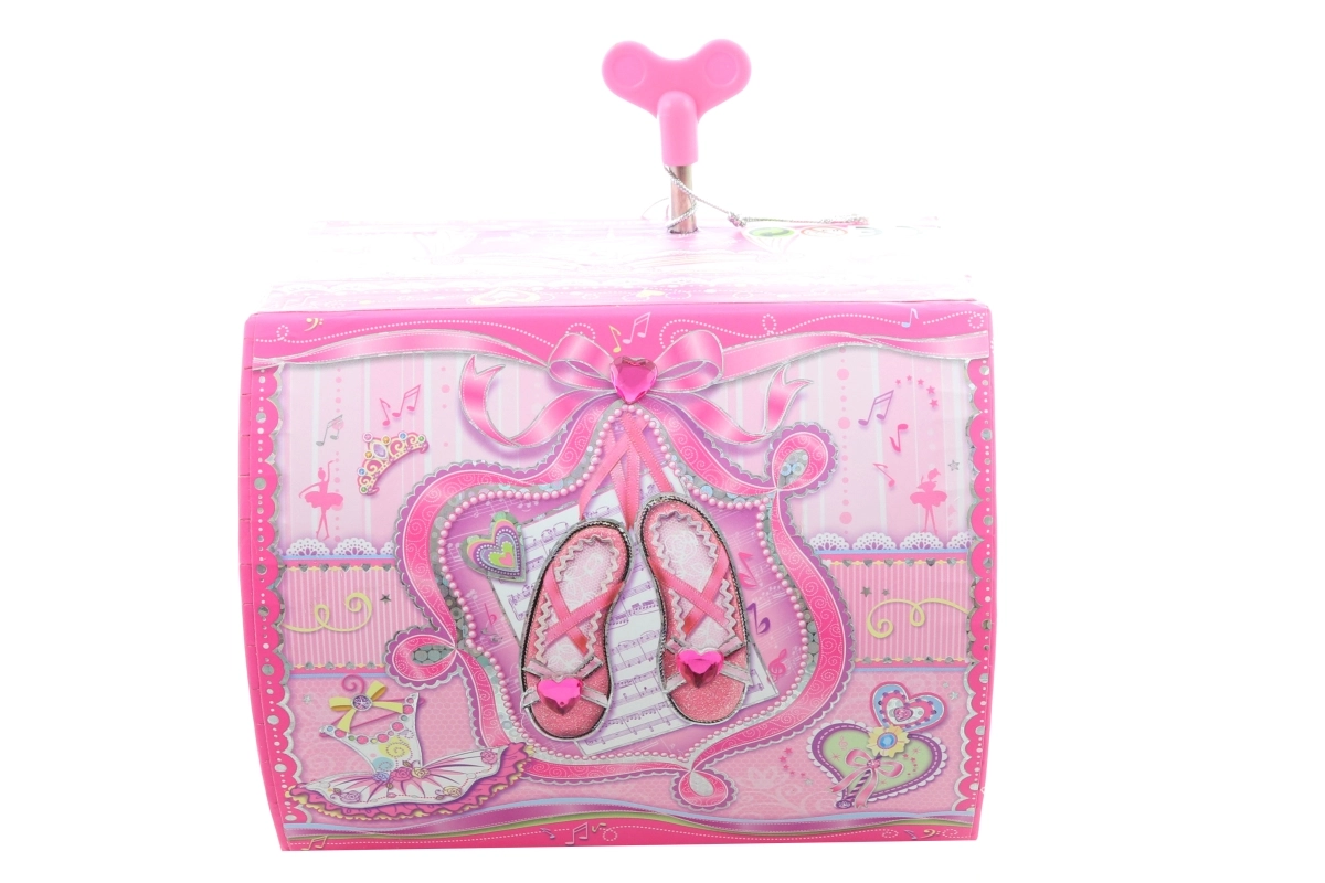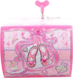 Élégante boîte à bijoux musicale rose au motif de ballet, qui ravira les petites comme les grandes amatrices de danse. Après avoir remonté la clé, l’ouverture du couvercle fait tourner la figurine de ballerine devant le miroir et une douce mélodie retentit. La boîte offre de la place pour de petits trésors et bijoux, dispose d’une fermeture pratique et séduit par son design délicat. Mécanisme musical à clé, ballerine rotative, miroir intérieur, dimensions compactes env. 13 × 10 × 10 cm.