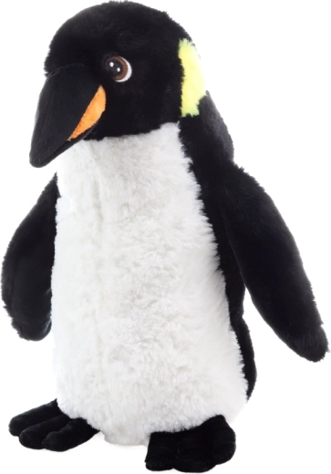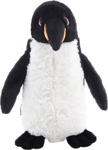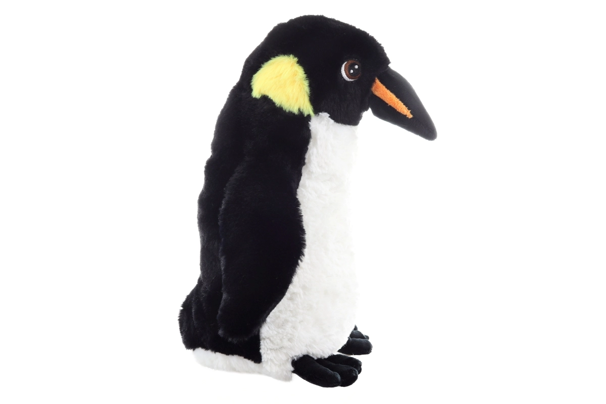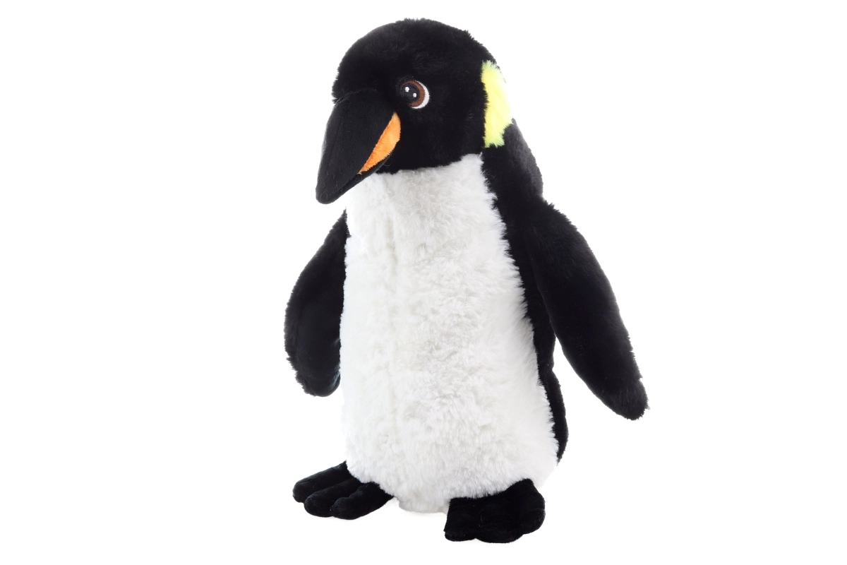 La coloration réaliste avec ventre blanc, ailes noires et bec contrasté stimule l’imagination et favorise le jeu créatif. Ses dimensions 30 × 23 × 17 cm en font un compagnon idéal en voyage comme dans le lit.