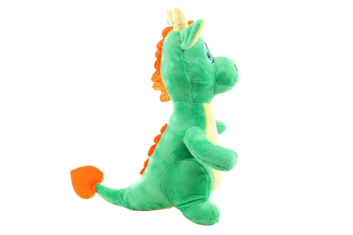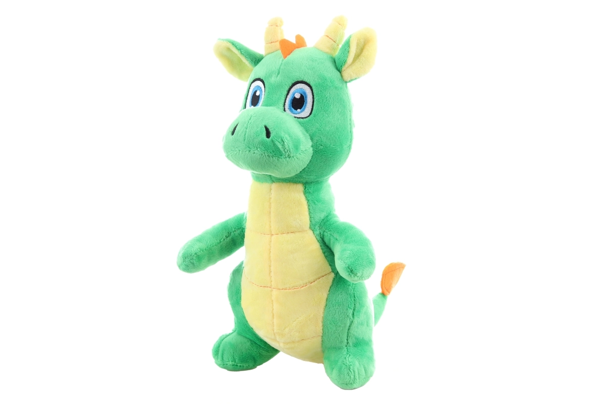 Ce dragonnet vert en peluche, avec son ventre contrasté et ses adorables détails, deviendra vite le compagnon préféré de chaque enfant. Grâce à sa surface moelleuse et son garnissage duveteux, il est idéal pour des câlins réconfortants et un jeu tout en douceur tout au long de la journée.
