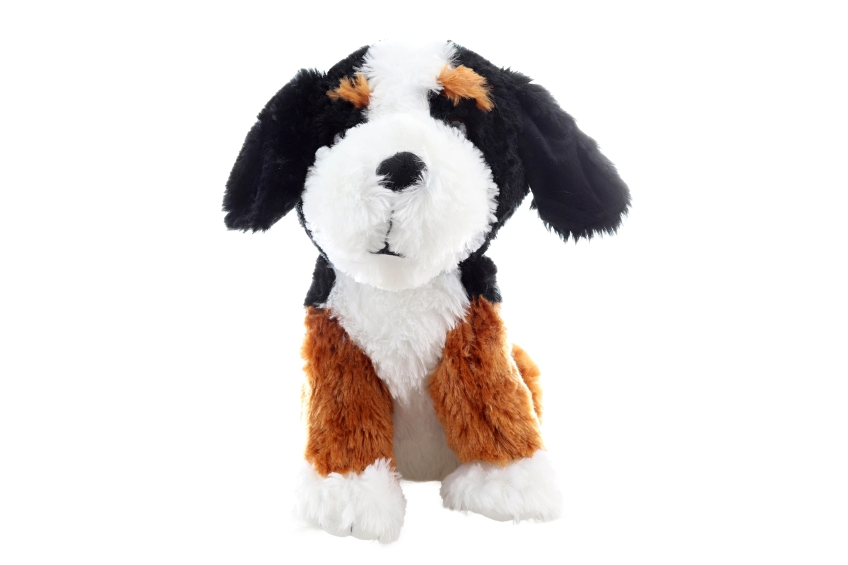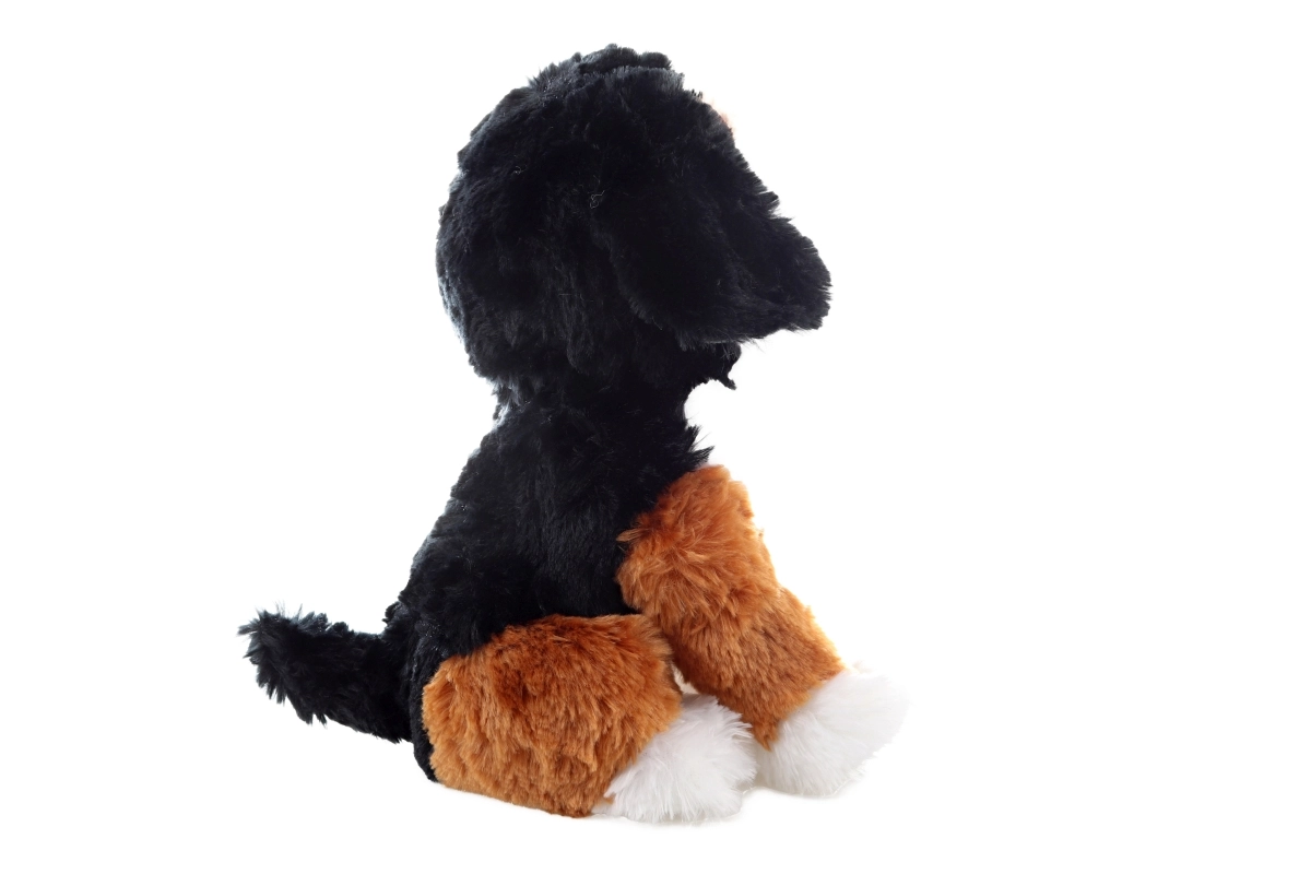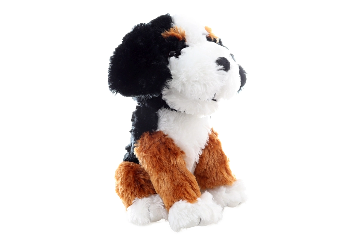 Adorable chien en peluche inspiré de la race bouvier bernois, compagnon idéal pour les câlins et le jeu. Grâce à sa fourrure ultra douce et soyeuse, à ses yeux et truffe brodés sécurisés et à sa position assise, il ravira les enfants dès 0+. Un super cadeau pour les petits amoureux des animaux.