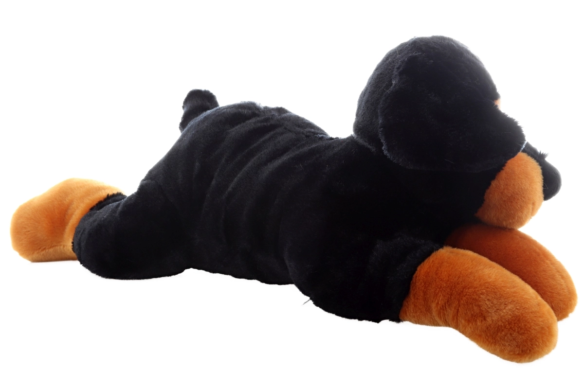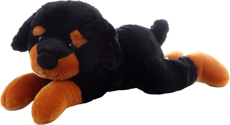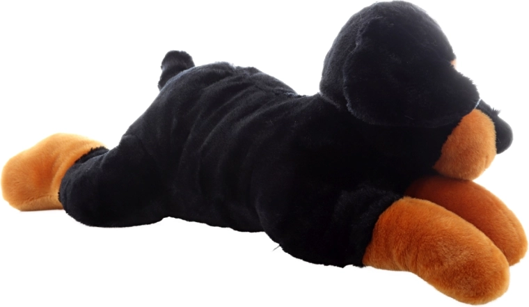 Ce chien en peluche au coloris réaliste, pelage noir avec pattes et museau bruns, est prêt pour des câlins sans fin. Grâce à sa surface douce et à son rembourrage de qualité, il est agréable au toucher et s’adapte parfaitement aux bras de l’enfant.