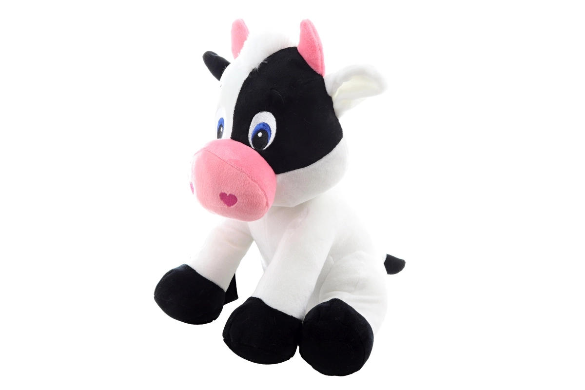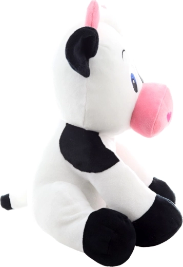 Adorable vache en peluche de 30 cm, le doudou idéal pour les bébés et les enfants plus grands. Fabriquée en matière douce et moelleuse, avec des détails délicatement brodés, elle tient parfaitement assise grâce à son corps stable. Parfaite comme doudou pour la nuit, compagne de voyage et décoration de chambre d’enfant. Convient dès 0+.